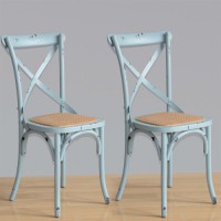 Opvallende, stijlvolle en comfortabele stoelen met antieke blue wash afwerking en gekruiste rugleuning. Ideaal voor o.a. restaurants, cafés en bistro's. Verkrijgbaar per 2 stuks.