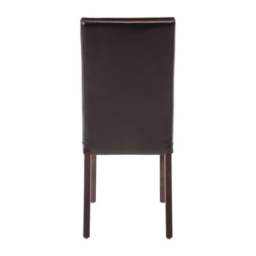 Mooie, zwarte kunstlederen stoelen, die perfect passen in een stijlvolle inrichting. Een sterk, hardhouten en volledig gestoffeerd frame met een hoge rugleuning zorgt dat uw gasten comfortabel zitten. Perfect voor gebruik in hotels en restaurants. Set van 2 stoelen.