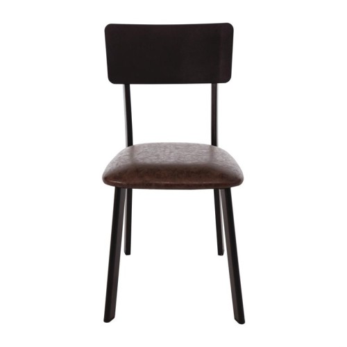 Stevige stoelen met stalen frame en gepolsterde zitting, bestand tegen dagelijks gebruik in drukbezochte horeca.