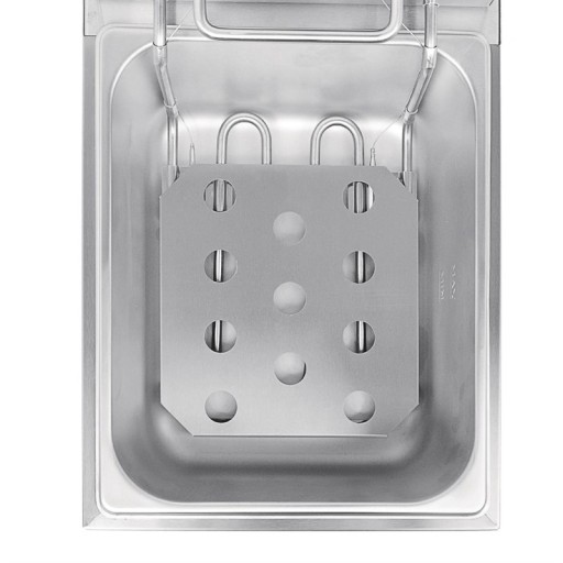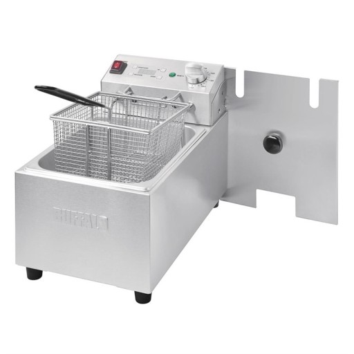 Als u gefrituurde gerechten op uw menu hebt staan, is de Buffalo 8 liter aanrechtbladfriteuse een uitstekende keuze voor het snel en nauwkeurig bereiden van grote hoeveelheden. Met de ingebouwde timer en de regelaar voor de kiestemperatuur heb je alle precisie die nodig is om een heerlijk knapperig en goudkleurig resultaat te krijgen. De solide constructie is zeer stevig en garandeert een langdurige werking, zelfs in drukke restaurant- of hotelkeukens. Het reinigen is ook gemakkelijker dankzij de aan de voorzijde gemonteerde kraan, die het aftappen van afgewerkte olie eenvoudig maakt.