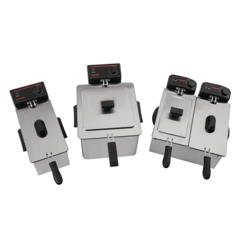Deze 2x 3,5L friteuse van Caterlite is een dubbele friteuse voor licht gebruik, met instelbare thermosstaat en overhittingsbeveiliging. Hierdoor is hij veilig en geschikt voor het frituren van vele soorten producten. Dit model heeft 2 bakken, wat handig is wanneer u 2 verschillende producten tegelijk wilt frituren. Dankzij de RVS constructie en uitneembare binnenbak is hij eenvoudig te reinigen.