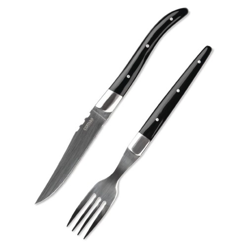 Comas ACR Negro steakbestek met hoogwaardig houten heft en mes met fijn gekarteld, RVS lemmet.