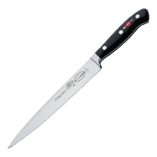 Een parisienneboor, 18 cm vleesvork, 25 cm slijpstaaf, 13 cm spatel, 15 cm uitbeenmes en 25 cm broodmes uit de Superior serie. Een 22 cm vleesmes, 8 cm schilmesje, 18 cm fileermes, 9 cm schilmesje en 22 cm koksmes uit de Premier Plus serie.