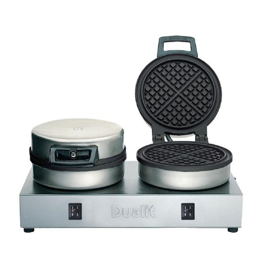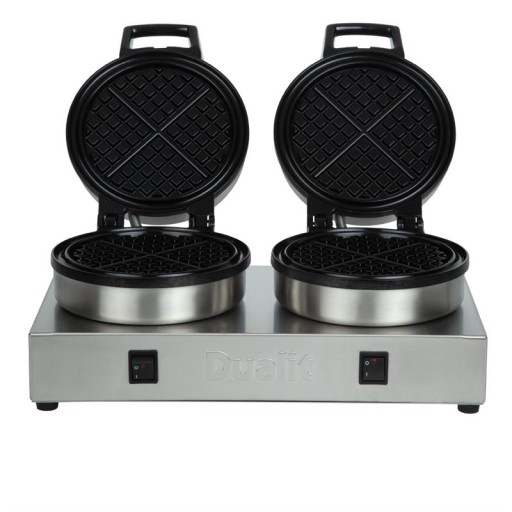 Dit zeer professionele Dualit 74002 dubbel wafelapparaat maakt, per ring, 4 wafels per ronde en 60 wafels per uur. De platen zijn teflon gecoat en zijn dus eenvoudig te reinigen. Het apparaat biedt de mogelijkheid om 1 ring uit te schakelen als u deze niet nodig heeft en dat maakt het apparaat zeer energie efficiënt.