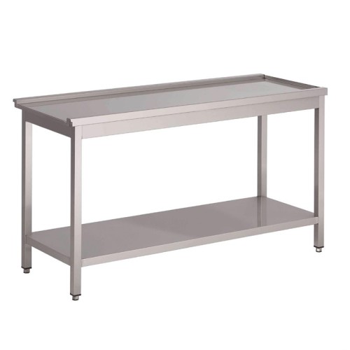 De voorspoel-, aanvoer- en afvoertafels van Gastro M van zijn vervaardigd uit roestvrijstaal 18/10 en zijn voorzien van verstelbare poten.