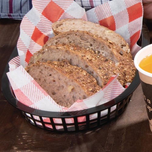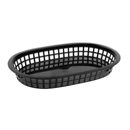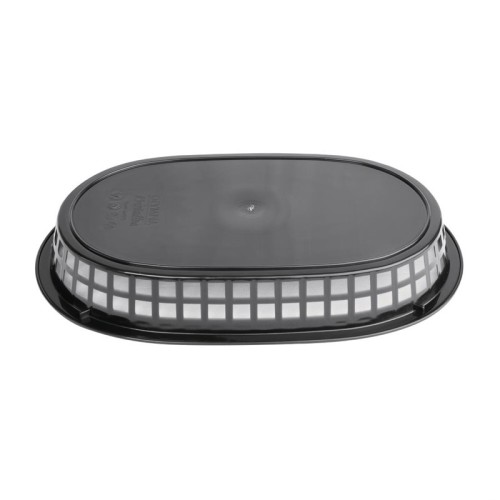 Ovaal polypropyleen tafelmandje voor het serveren van friet, burgers, sandwiches en meer. Geschikt voor magnetron, vriezer en vaatwasser. Afmeting: 4(h)x27,5(b)x17,5(d)cm.