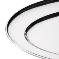 Voor servies dat zowel praktisch als stijlvol is, kies je een ovalen dienblad van Olympia van roestvrij staal. Dankzij het ontwerp van gepolijst roestvrij staal heeft dit ovale dienblad een elegante, opvallende look die de presentatie van uw hapjes, hors d'œuvres en drankjes zeker tot leven zal brengen. Een opstaande rand zorgt ervoor dat uw eten en drinken niet van het dienblad valt - waardoor het risico op kostbare, gevaarlijke morsen wordt geminimaliseerd. En vanwege het lichtgewicht materiaal is het voor het bedienend personeel gemakkelijk om dit dienblad te balanceren en te dragen. Dit betekent dat ze comfortabel en veilig grote hoeveelheden hapjes, desserts en dranken aan gasten kunnen serveren zonder bang te hoeven zijn voor druppels. Maar dat is niet alles. Het roestvrijstalen materiaal maakt het dienblad ook vaatwasmachinebestendig. Dus schoonmaken en onderhouden is zo eenvoudig als maar kan.
