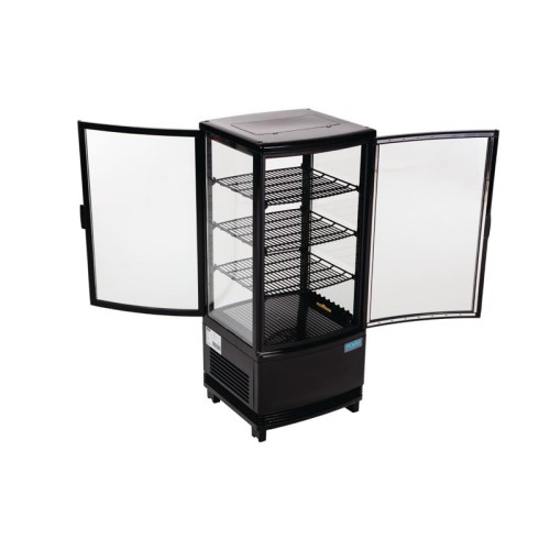 De koeling heeft twee glazen deuren met stijlvol gebogen ontwerp en is makkelijk toegankelijk en schoon te maken. De drie stevige schappen zorgen dat u de inhoud flexibel in kunt delen, terwijl de interne verlichting uw producten mooi uitlicht. Ideaal om de verkoop te stimuleren tijdens de drukke lunch- of ontbijtmomenten.