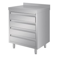 Ruim uw keuken op met deze RVS werkbank. In de 4 laden kunt u keukengerei netjes opbergen en het blad kan dienen als extra werkplek. Ideaal voor kleine keukens. Met verstelbare poten.